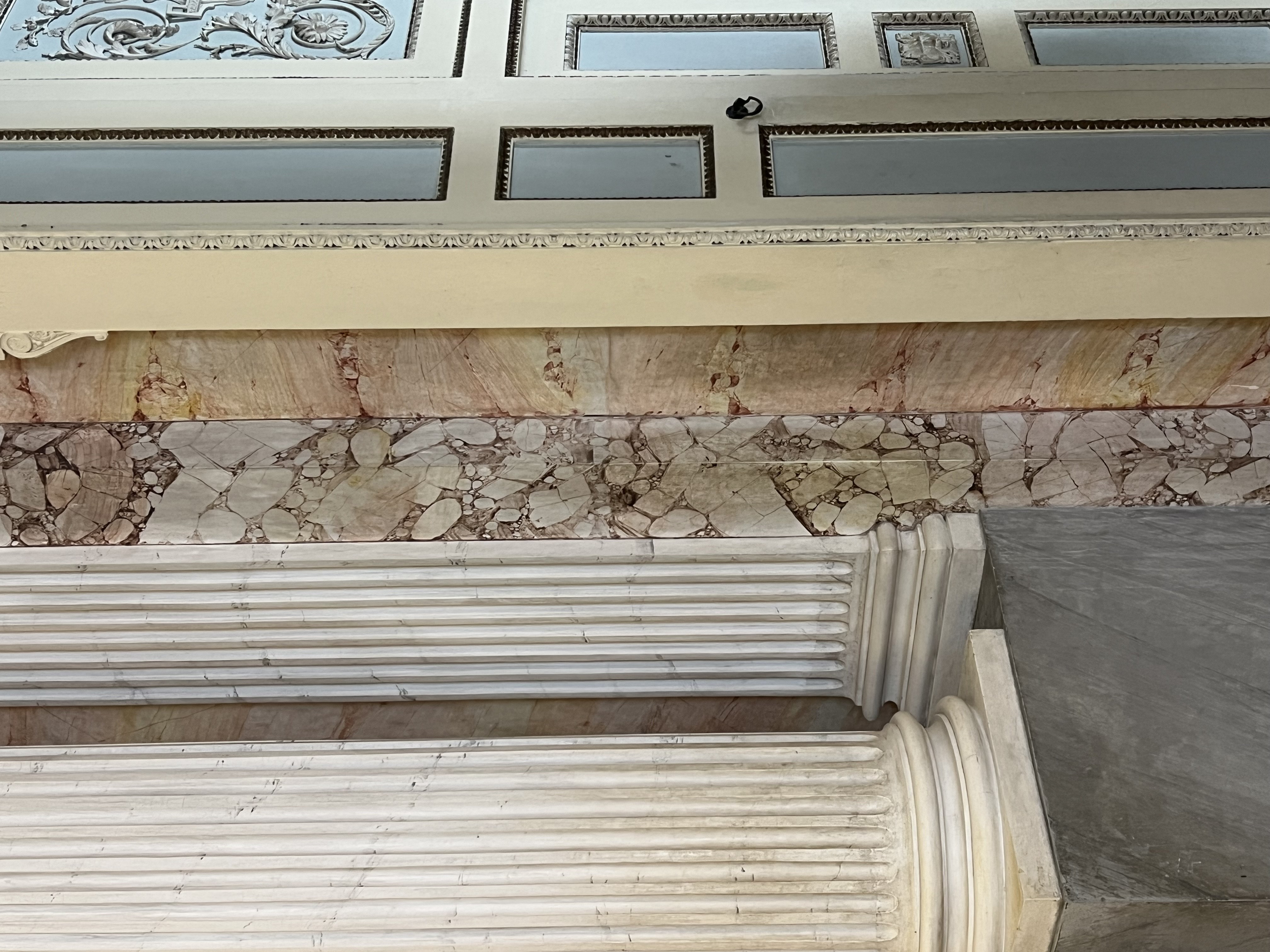 Zurück in Weinheim wurde im Showroom weitergearbeitet – Zimmer 20 wurde nochmal überarbeitet, die Decke nochmal aufgeschlitzt, Lichtpunkte verlegt - die waren einfach noch nicht perfekt - Wände gestrichen, Stucksockel lackiert und jetzt warte ich noch auf die Bemusterungsinsel.